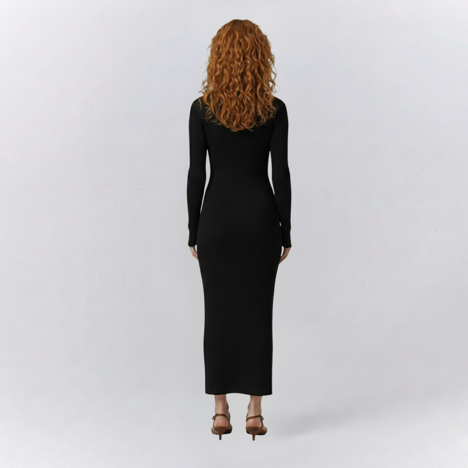 Soft ribbed knit that hugs the body in all the right places, with rich texture and flattering silhouette. Delicate gold buttons add a touch of contrast, catching the light against deep, moody tones for a look that’s both elegant and bold a perfect balance for the season.