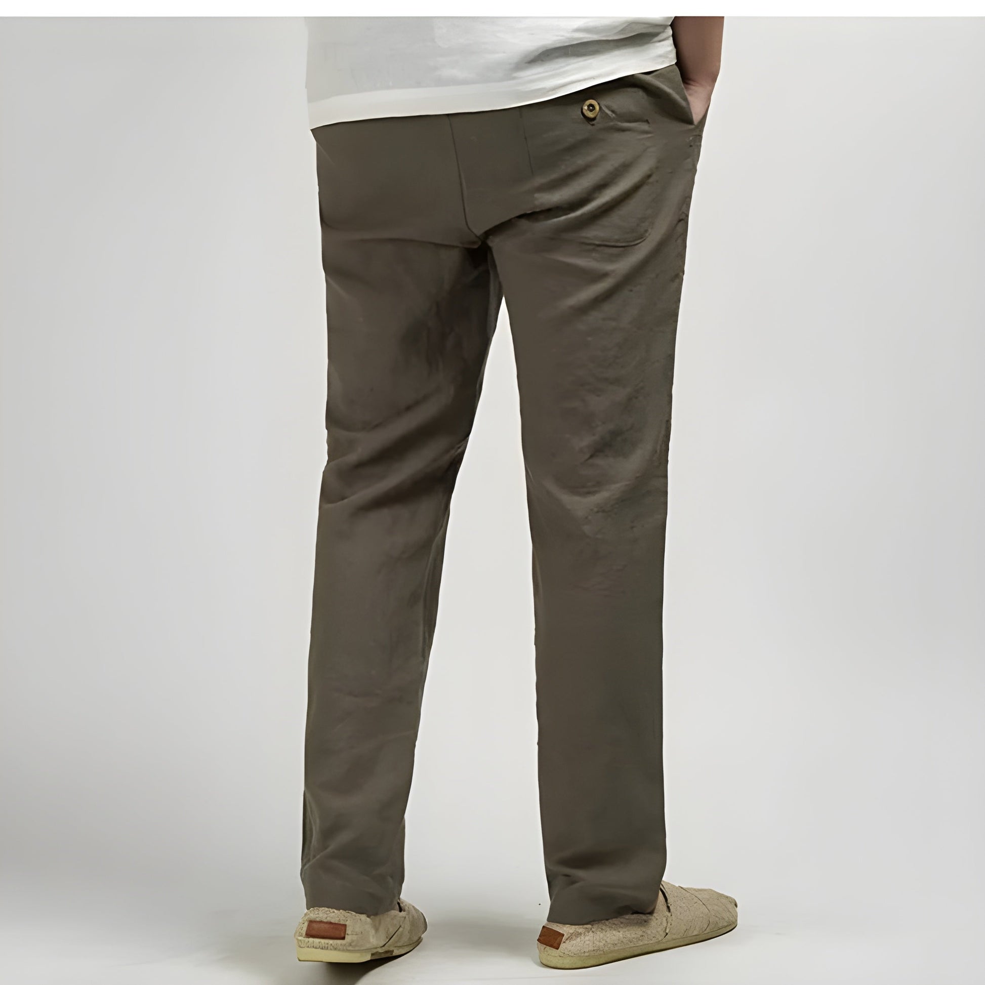 Premium, durable cotton-linen blend, soft-textured, breathable, and lightweight, cut to a straight, ankle-length, loose fit. It showcases a modern design that seamlessly blends comfort and style, with side pockets for practicality—a versatile smart-casual fit.