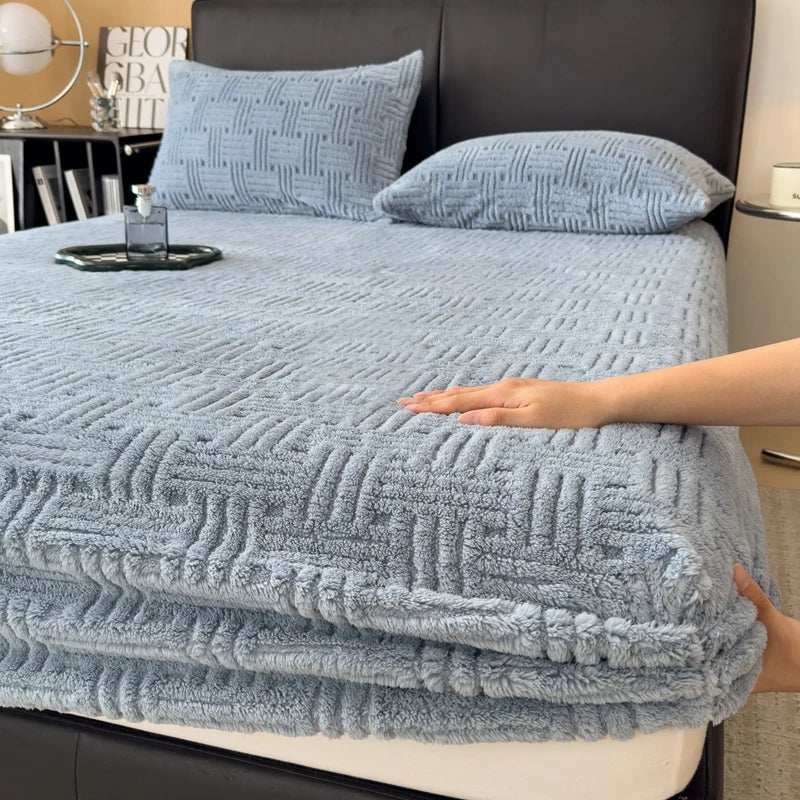 Your bed deserves an everyday upgrade in both comfort and style. Our Plush Embossed Fitted Sheet transforms your sleep space into a cozy sanctuary, blending the luxurious softness of coral velvet with a chic, modern texture for an instantly elevated look and feel.