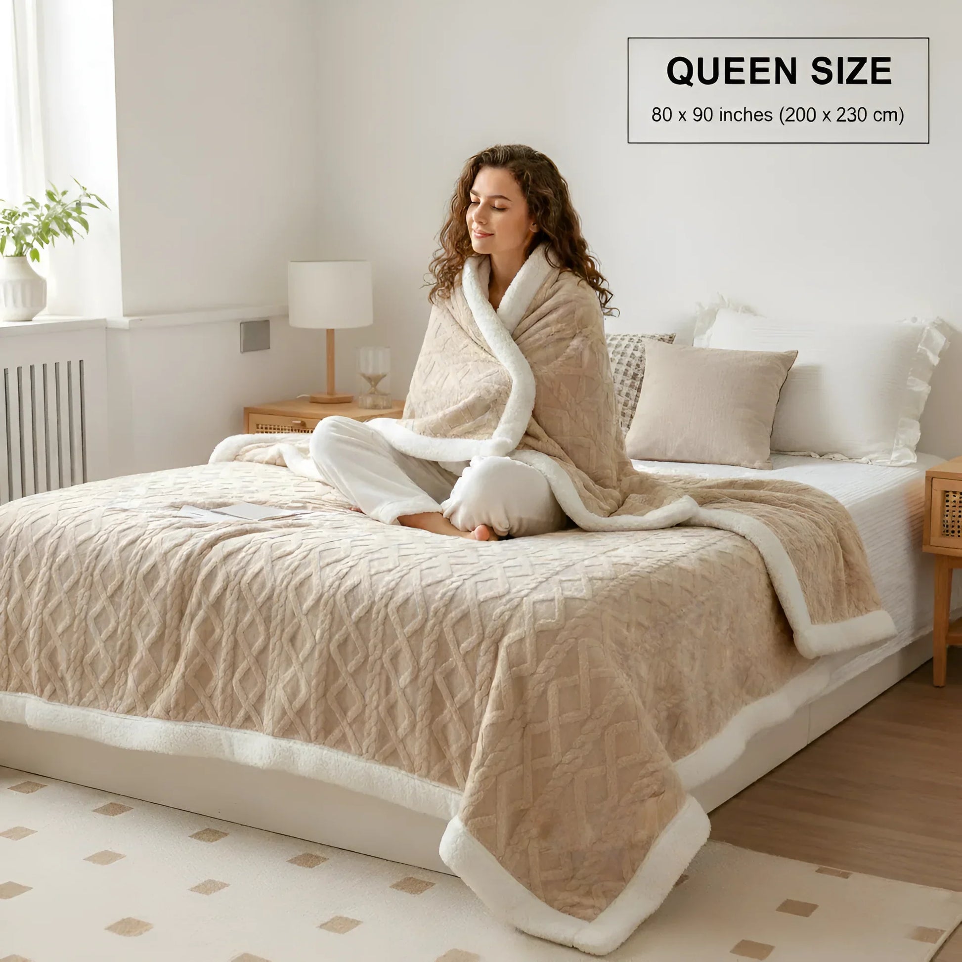 Wrap yourself in the ultimate comfort with our Contemporary Sherpa Fleece Throw. Its inviting warmth and elegant diamond texture instantly elevate your room, transforming it into a cozy, luxurious retreat.