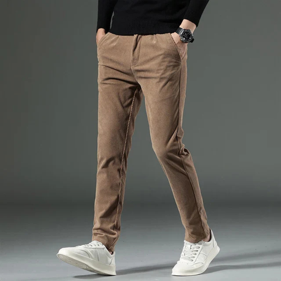Joshua Ribbed Pleated Corduroy Trousers | Belt Loops Full-Length Corduroy Trousers